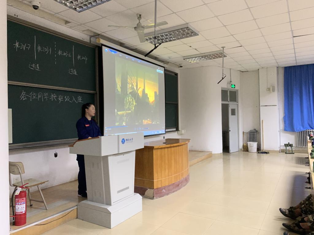 活动伊始,机电学院各班导师助理组织安排新生有序进入教室,并就今天军训期间出现的问题进行了总结,总结之后开始播放校园安全教育片。随后,由消防教员来向同学们讲授消防安全方面的知识。在此过程中教员向同学们普及了消防安全不文明行为举报电话96119,还以幽默的方式讲解到灭火器使用步骤“提、拔、握、压”可以根据“提拔我呀”谐音来记忆。并特别强调同学们在平时要留意安全通道,掌握一定的自救技能并且在遇到火灾或者险情的时候切忌慌乱,一定要沉着冷静的运用逃生技能和自救方法。要学会运用身边的消防器械,只要胆大心细,救命绳就在身边。紧接着,校园消防教育结束后开始播放国家安全教育片,随着我国的国际地位不断提高,为了维护国家安全,我国深入开展反间谍斗争。影片中列举了很多境外不法分子通过金钱诱骗国内人士作为“间谍”来获取我国机密的案例,危害国家安全的间谍行为都要受到相应的法律追究。最后,教育片播放完毕后导师助理组织学生有序离开。