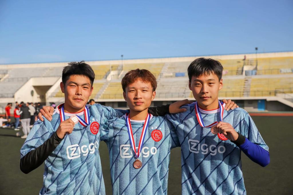 比赛伊始,计控学院代表队率先发起进攻,机电学院代表队毫不退让,步步防守,双方竞争激烈,实力不分上下。时间一分一秒的过去,就在众人焦急等待之时,只见机电学院代表队66号球员李元带球掠过,一记射门拿下了比赛的第一分,赢得场外观众一片欢呼喝彩声。中场休息过后,竞争的硝烟越发浓烈,比赛进入白热化阶段。计控学院代表队13号球员发起冲锋,绕球过人,迅速出脚,就在观众惊叹之时,机电学院代表队14号守门员于静泓一个鱼跃挡了下来。机电学院代表队10号球员黎臻诚一次次的带球冲锋、7号球员邢圣泽的一次次抢断以及5号球员李学松的一记射门,一帧帧精彩绝伦的表现,博得现场阵阵掌声。最终,机电学院代表队以2:0的比分夺得季军。