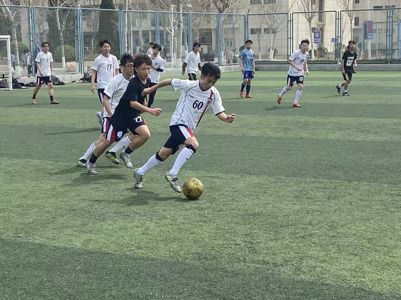 经过半个月的激烈角逐,四支代表队脱颖而出,挺进决赛的两支队伍为A1和A2代表队,B1和B2代表队入围季军争夺赛。决赛现场双方实力旗鼓相当,你追我赶,难分上下。A1代表队凭借着各队员间默契的配合,趁对方守门员未回守之时,A1代表队球员一脚射门,拿到了全场比赛的第一分,极大地调动了观众的情绪。下半场比赛中,A1代表队继续乘胜追击,并再次射门成功,将本场比赛推向高潮。转向同时进行的另一场比赛,他们配合默契,攻防互换,双方队员保持高昂的斗志,粉碎对方一系列攻球,反抢,防守。伴随着裁判的哨声,精彩的足球赛事落下了帷幕。最终,A1代表队以比分2:0获得冠军,A2代表队获得亚军,B1代表队以2:1的比分获得季军,B2代表队获得本次足球赛最佳组织奖,刘哲同学凭借精湛的球技获得金靴奖。