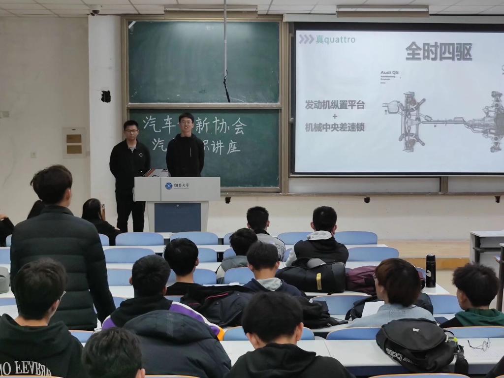 为宣传汽车的相关专业知识,进一步增加同学们对其了解,pg游戏电子模拟器汽车创新协会于11月4日晚在综合楼213室举行了第三次汽车知识讲座。汽车创新协会全体成员及汽车爱好者参加了此次活动。