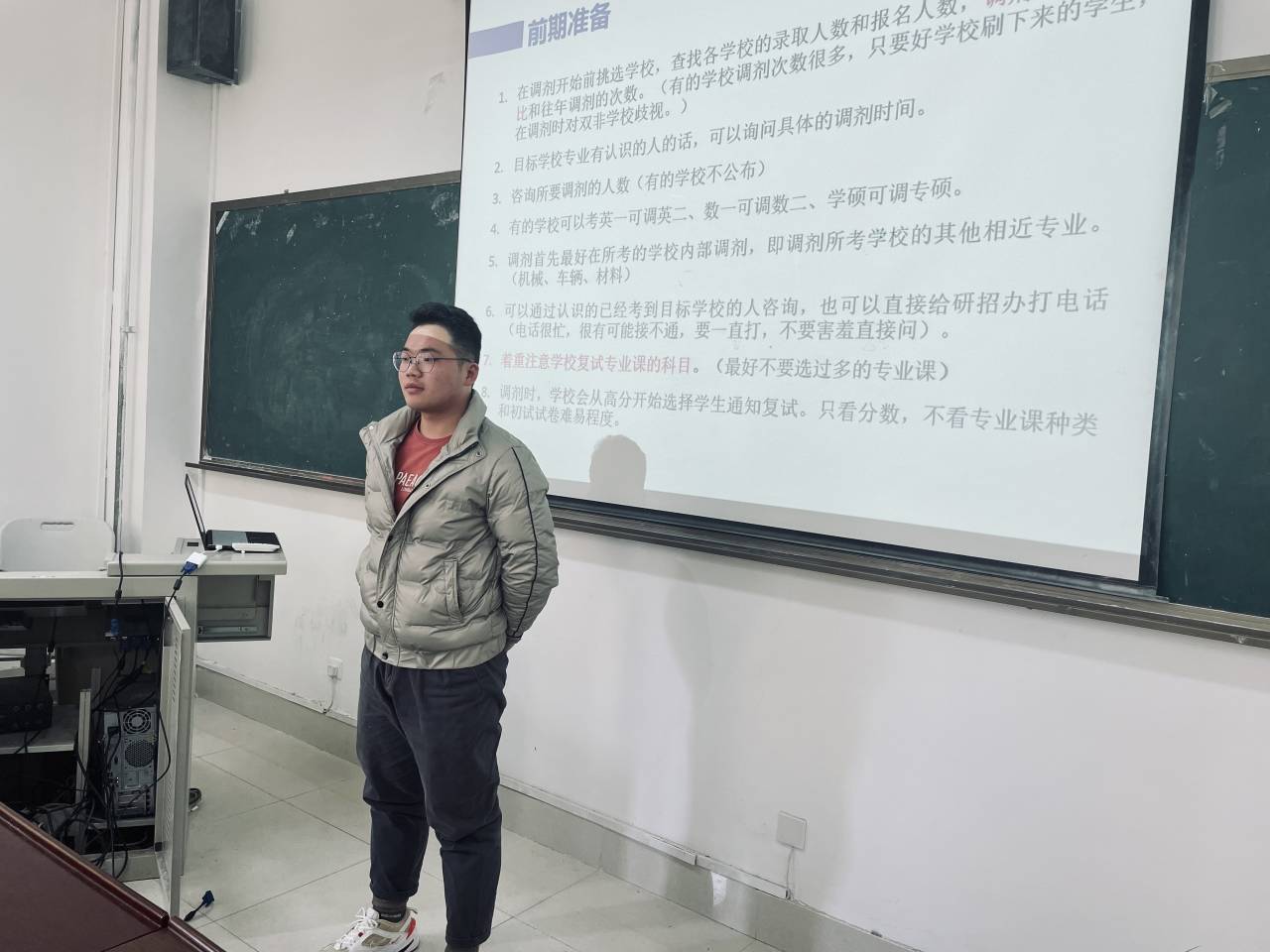 会中,六名学长分别结合自身考研报考经历,仔细详细地同在座同学讲解了报考的注意问题和切行可用的方法,包括复试前的准备、心态的调整、目标的确立等。以耿祥为例,作为pg游戏电子模拟器2021级研究生,他向在座的各位研究生建议:“行百里者半九十,复试之前的准备工作尤为重要,切不可松懈;听听过来人的建议,作为已经进入研究生行列的师兄师姐是值得引经据典的好地方。”同时,他还点出不要随波逐流,考研是一场一个人的战斗,要把握住自己的节奏,不要盲目跟随别人的节奏,尽人事,知天命。其中,他还向大家推荐了有助于大家进行调剂复试的几款App,并且再次提醒大家要放平心态,稳中求胜。随后,高建通学长分享了自己的心得体会和技巧方法。他将一些报考和复试各个阶段的细节问题一一罗列,重点强调了在座的同学应注意不要选择过多的专业课,不懂就去咨询。关于调剂的问题,高建通学长将调剂时各阶段的注意问题以及细节问题做了详细地说明,这无疑为在座的预备复试的学生打了一针镇定剂。接着,其他的几位学长也依次上台为大家进行经验的分享以及方法的传授。最后,主持人何彤宣布结束了本次交流会。