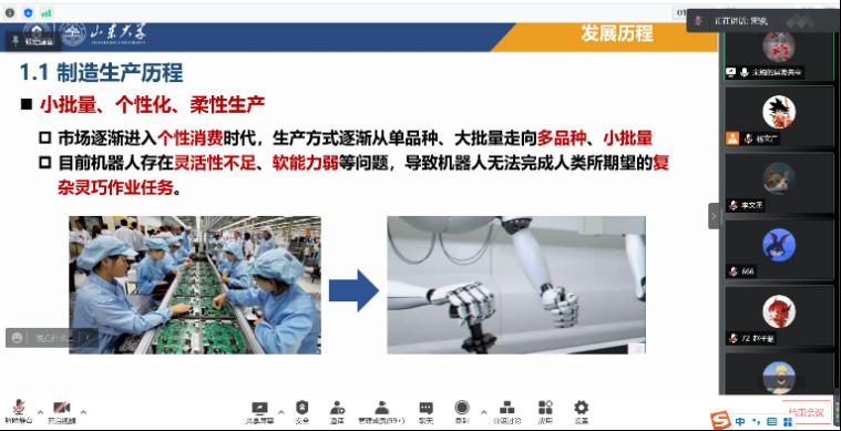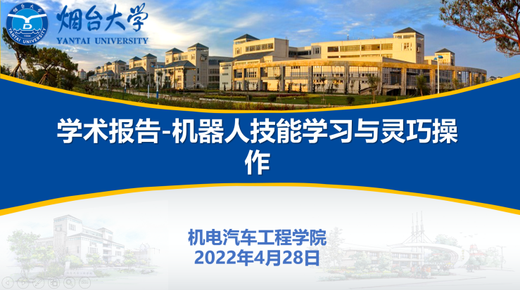 4月28日晚上,pg游戏电子模拟器举办题为“机器人技能学习与灵巧操作”的报告会,本次报告会由山东大学科学技术研究院副院长,长江学者,宋锐教授主讲,我院部分老师和研究生参加报告会,报告会采用线上形式进行。