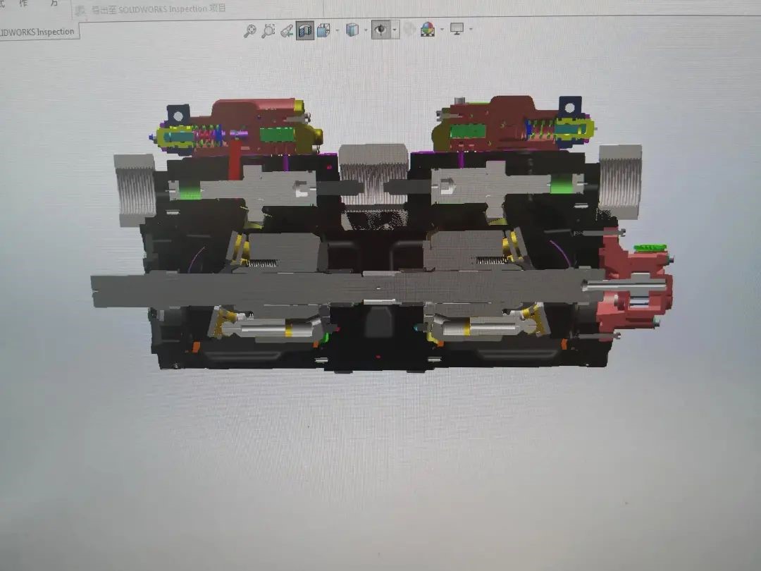 该项目研发了高端轴向柱塞泵/马达的数字化设计系统,根据液压泵/马达的排量、额定压力、转速等基本参数自动解算零件的最优结构尺寸,进而形成零件三维,达到设计的智能化、快速化和高可靠性,解决了国内企业设计依靠仿制,无自主设计能力,产品质量低只能供应二级维修市场的问题。建立了柱塞泵/马达核心组件的制造关键技术体系,发明了高效率的缸体孔珩磨找正工艺装备和柱塞端面磨削工艺装备,实现多缸体并行珩磨及多柱塞端面同步磨削,解决单个加工圆柱度、垂直度等不一致和效率低难题。提出了缸体孔压合铜套最优过盈量的数学模型,解决了缸体压裂或铜套松脱难题,实现多铜套同步压合新工艺,合格率99.8%以上。提出了柱塞和滑靴包合新工艺,解决了滑靴和柱塞包合时出现裂纹和滑靴松脱难题。提出了柱塞泵/马达耐久性及装机可靠性的试验方法,突破了试验系统动态优化布局及低振动噪声传动控制关键技术,提高了试验技术水平。编写了不同类型试验的GB国家标准2项和GXB工程协会标准3项。解决了试验方法不全面、不科学和成本高的难题,为提高产品质量奠定了基础。